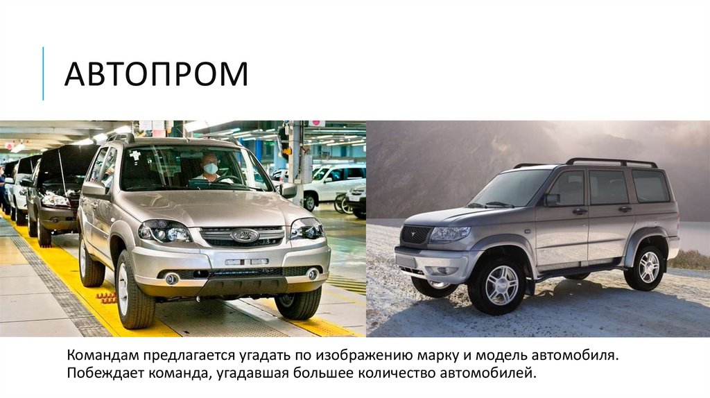АВТОПРОМКомандам предлагается угадать по изображению марку и модель автомобиля.