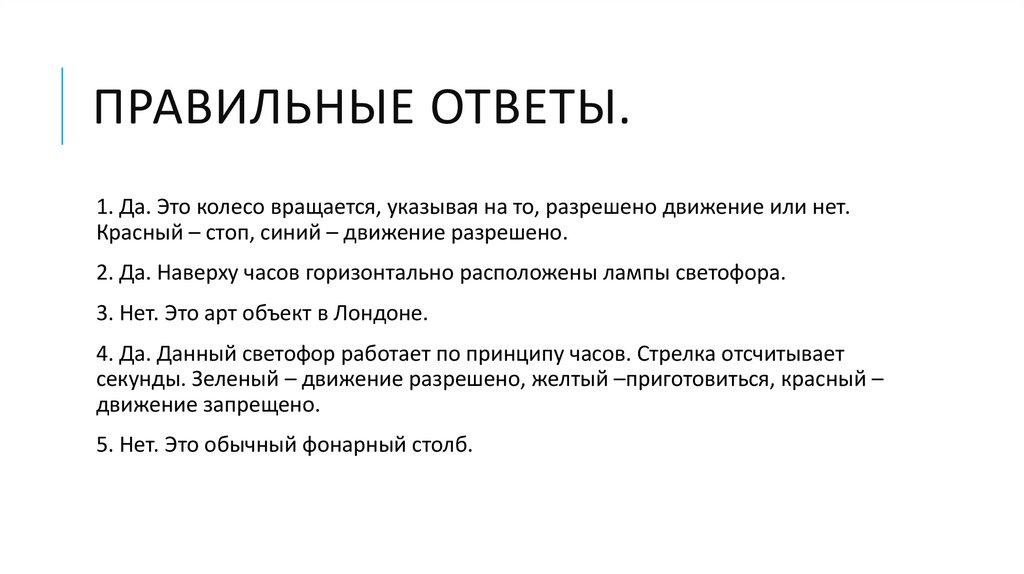 ПРАВИЛЬНЫЕ ОТВЕТЫ.1. Да. Это колесо вращается, указывая на то, разрешено движение или нет.