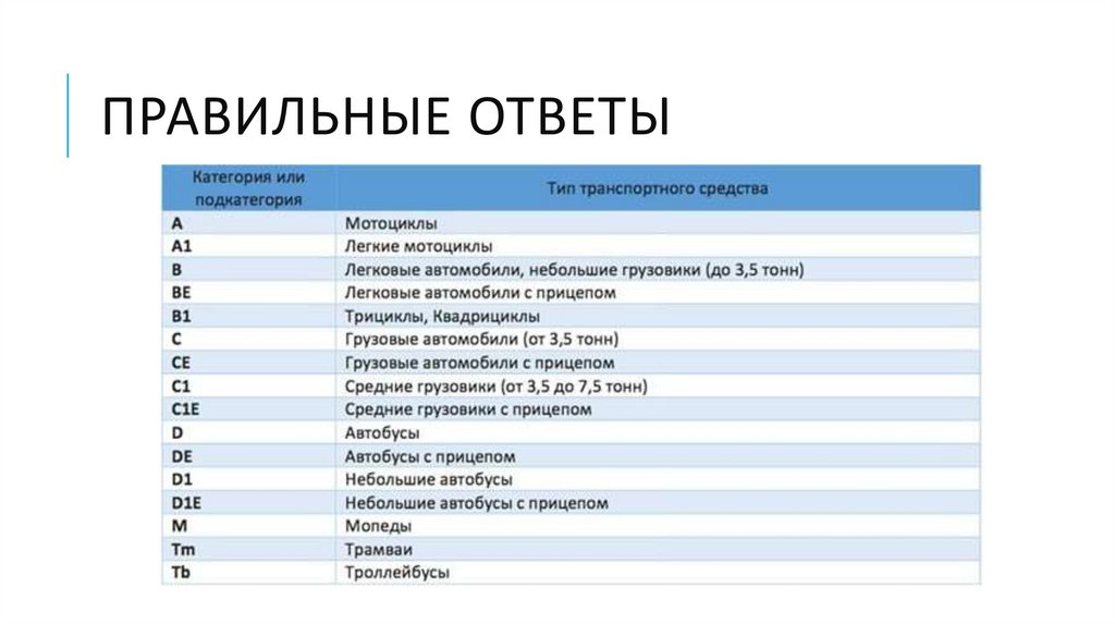 КАТЕГОРИИ ТРАНСПОРТНЫХСРЕДСТВ