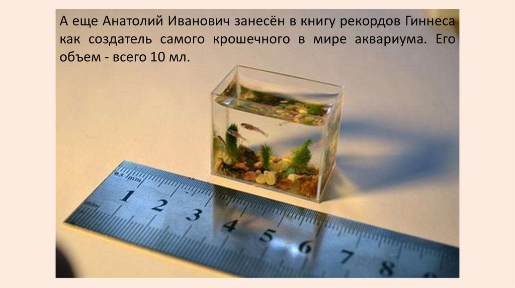 как создатель самого крошечного в мире аквариума. Его