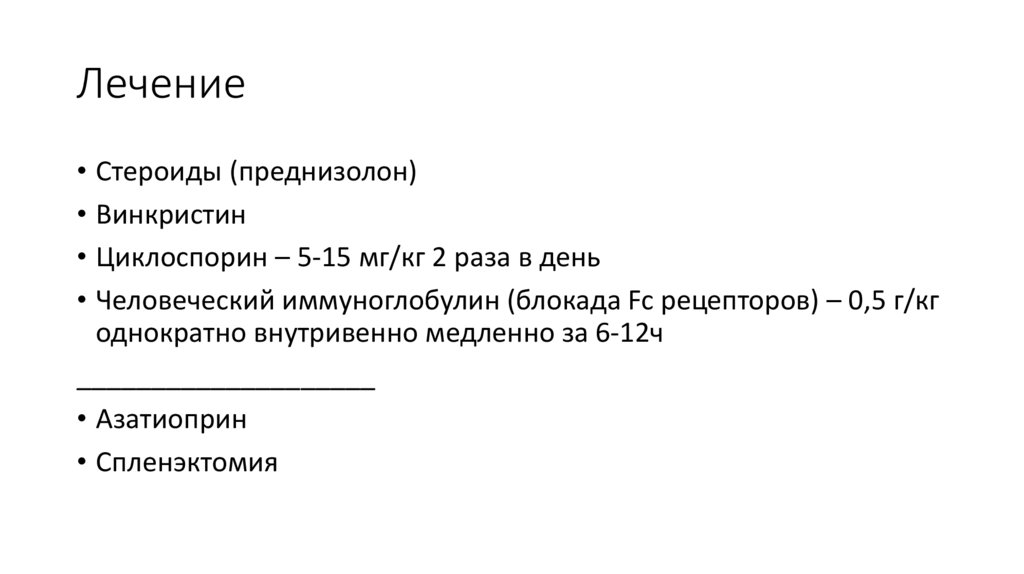 • Человеческий иммуноглобулин (блокада Fc рецепторов) – 0,5 г/кг
