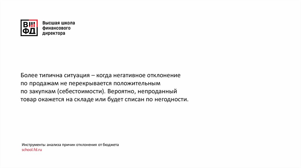 Более типична ситуация – когда негативное отклонениепо продажам не перекрывается положительным