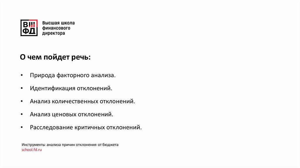Идентификация отклоненийИнструменты анализа причин отклонения от бюджета