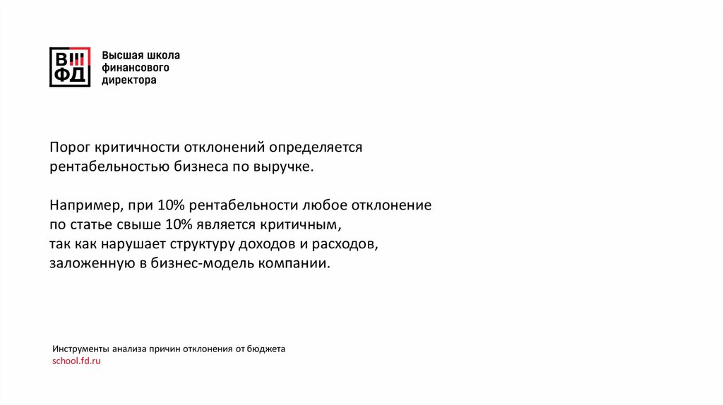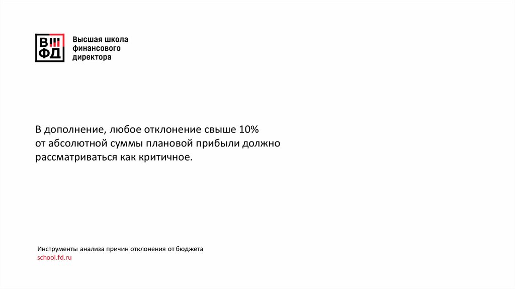 В дополнение, любое отклонение свыше 10%от абсолютной суммы плановой прибыли должно