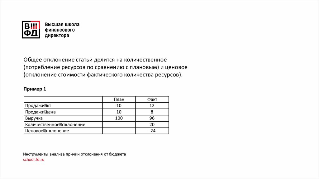 Основные причины почти всех отклонений:Падение рынка или изменение потребительского