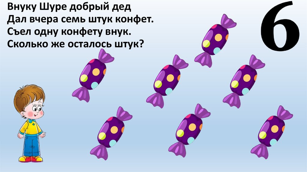 Внуку Шуре добрый дедДал вчера семь штук конфет.