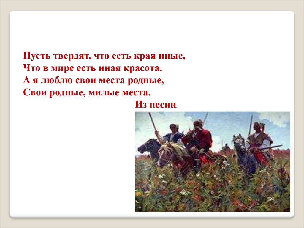 Пусть твердят, что есть края иные,Что в мире есть иная красота.