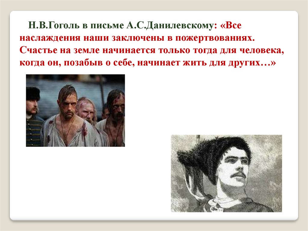 Н.В.Гоголь в письме А.С.Данилевскому: «Всенаслаждения наши заключены в пожертвованиях.