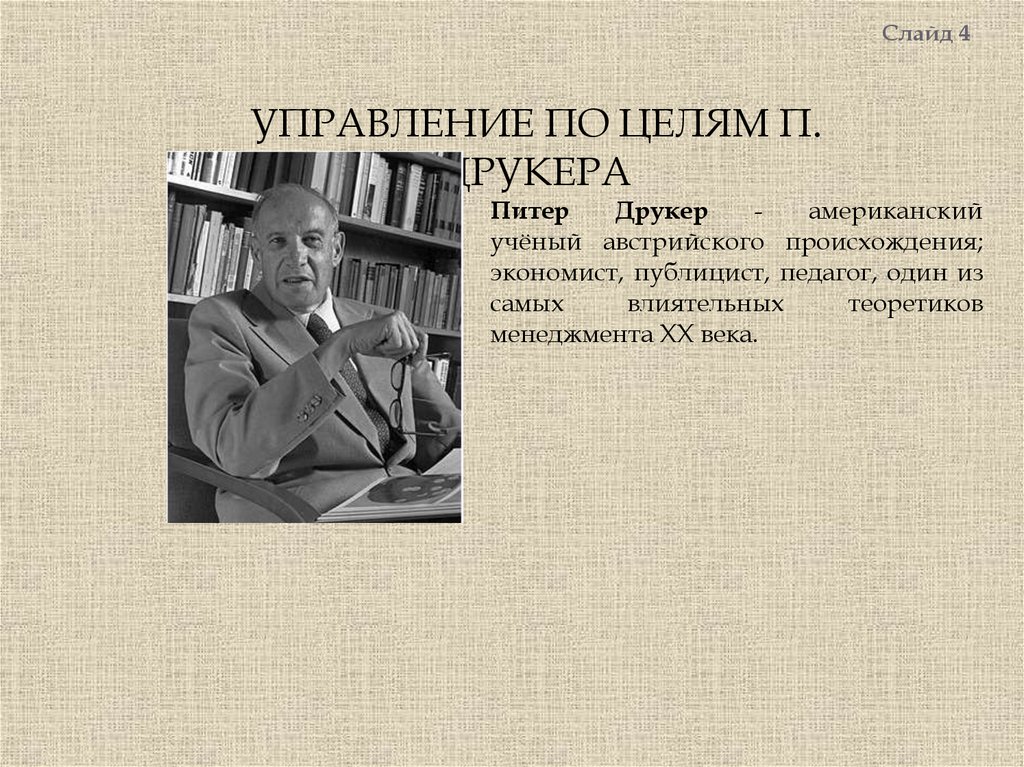 Слайд 4УПРАВЛЕНИЕ ПО ЦЕЛЯМ П.