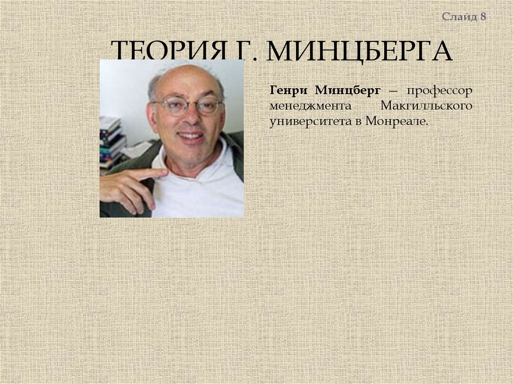 Слайд 8ТЕОРИЯ Г. МИНЦБЕРГА