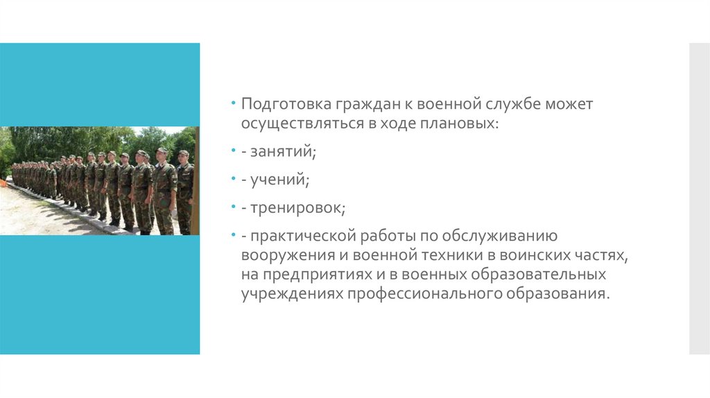 Подготовка граждан к военной службе можетосуществляться в ходе плановых: