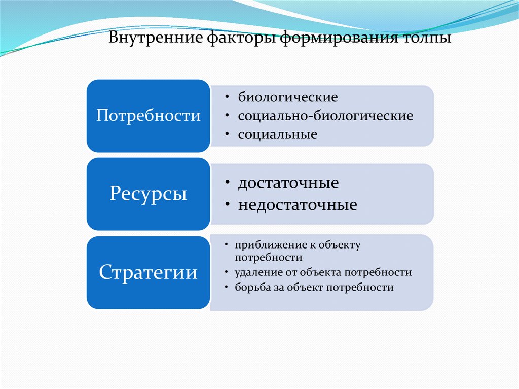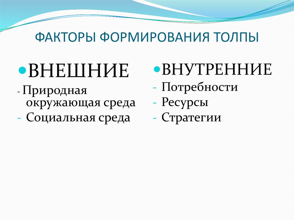 Факторы формирования толпы. Внешние и внутренние факторы формирования толпы. Лекция 4
