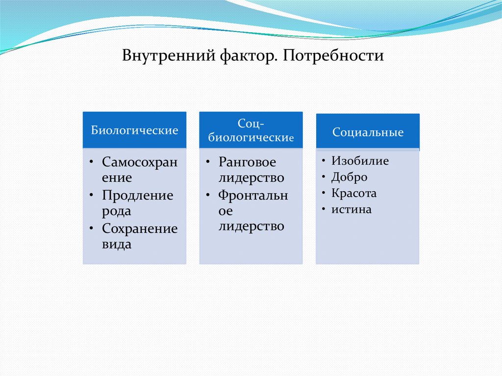 Внутренний фактор. ПотребностиБиологические