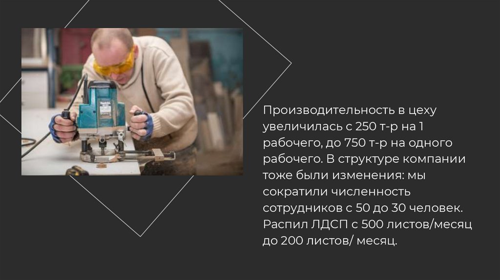 Производительность в цехуувеличилась с 250 т-р на 1