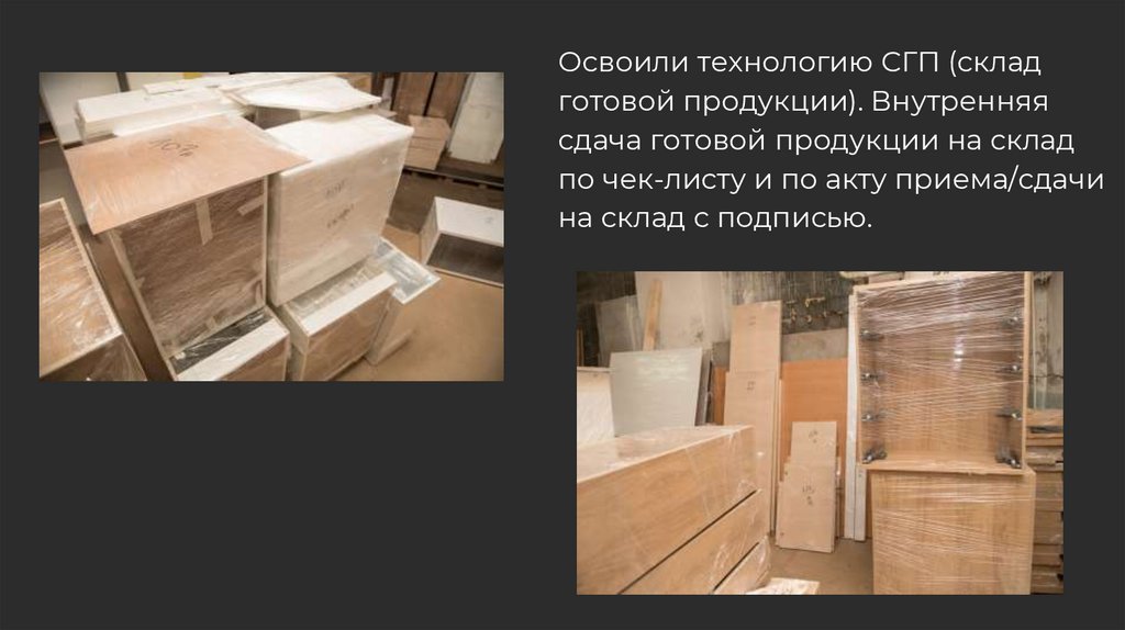 Освоили технологию СГП (складготовой продукции). Внутренняя