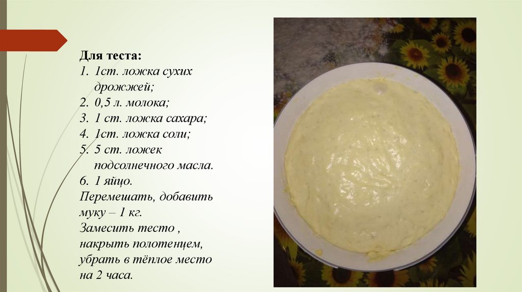 Замесить тесто ,