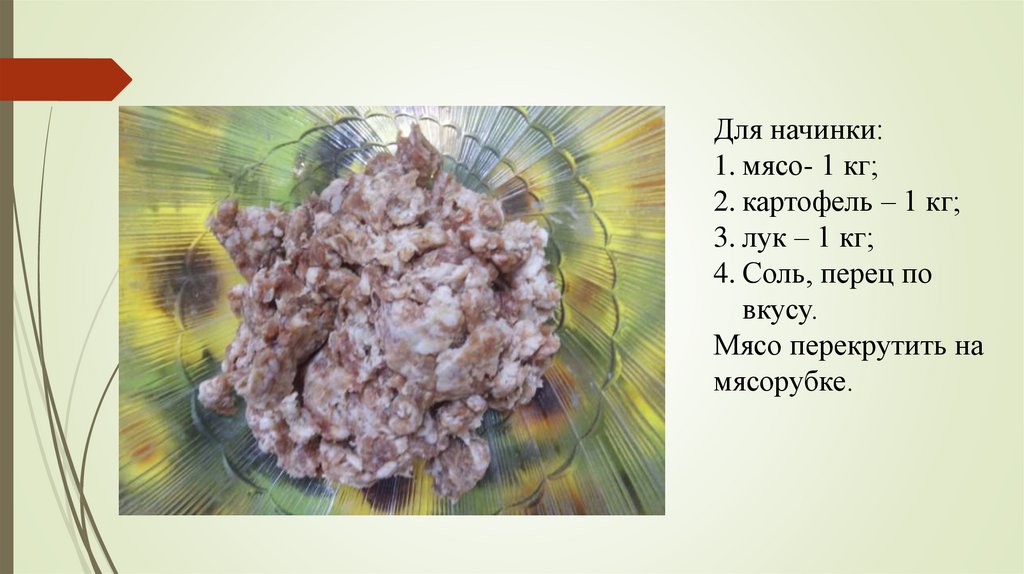 Для начинки:1. мясо- 1 кг;