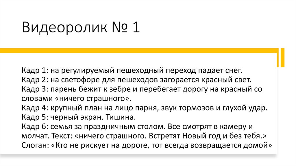 Слоган: «Кто не рискует на дороге, тот всегда возвращается домой»
