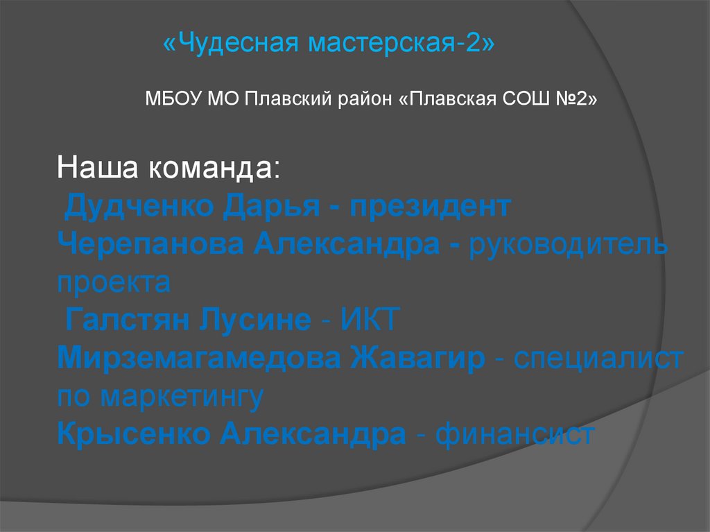 «Чудесная мастерская-2»МБОУ МО Плавский район «Плавская СОШ №2»