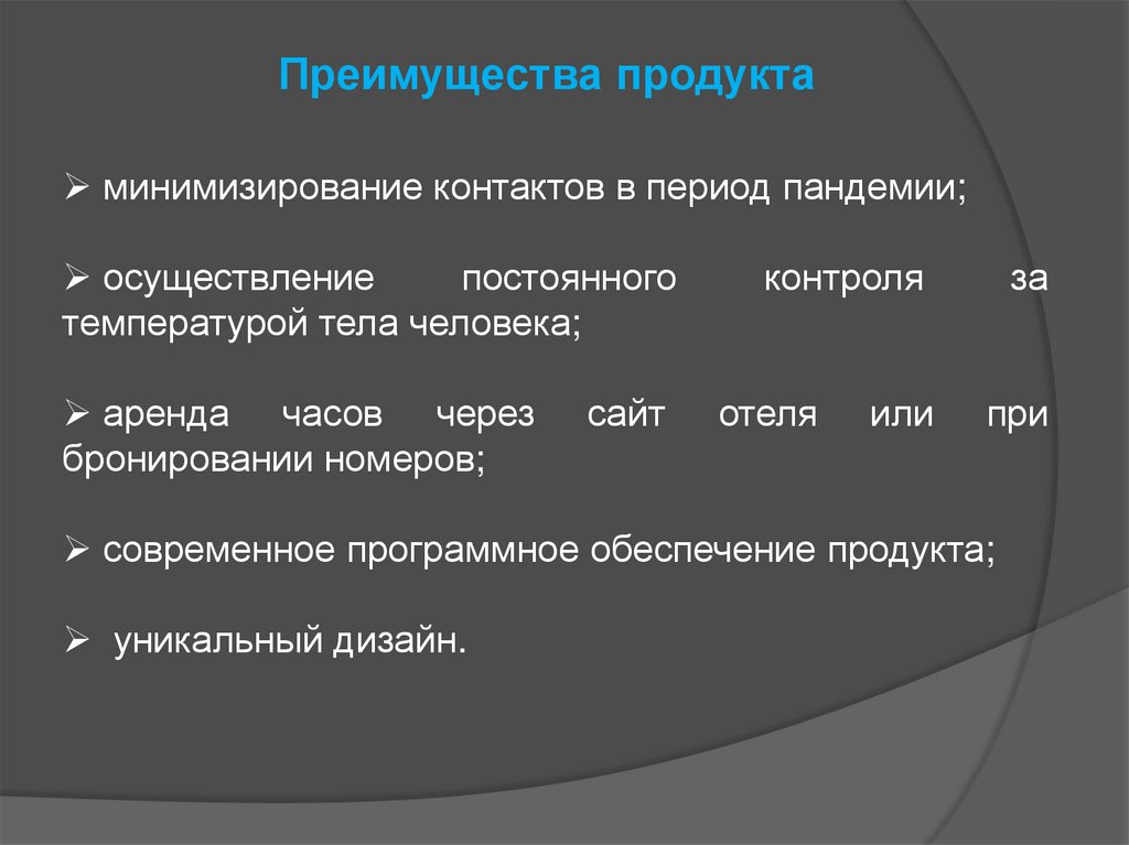 Преимущества продуктаминимизирование контактов в период пандемии;
