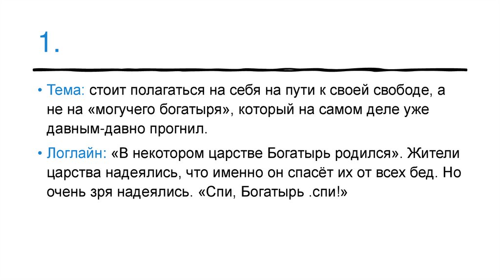 Интерпретация сказки М. Салтыкова-Щедрина «Богатырь»