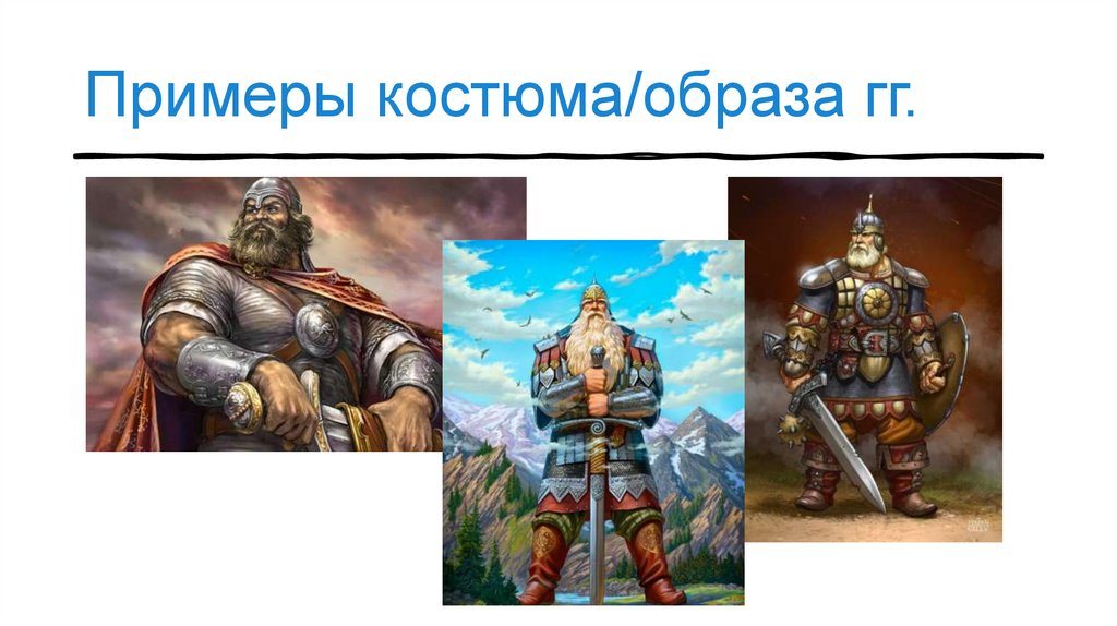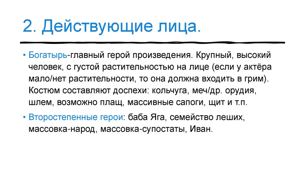 2. Действующие лица.• Богатырь-главный герой произведения. Крупный, высокий