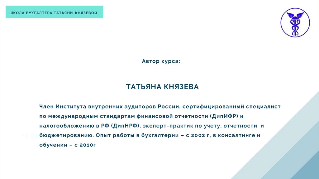 ШКОЛА БУХГАЛТЕРА ТАТЬЯНЫ КНЯЗЕВОЙАвтор курса:
