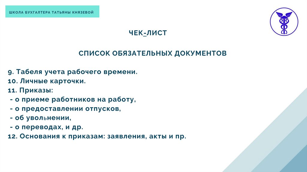 ШКОЛА БУХГАЛТЕРА ТАТЬЯНЫ КНЯЗЕВОЙДОКУМЕНТООБОРОТ