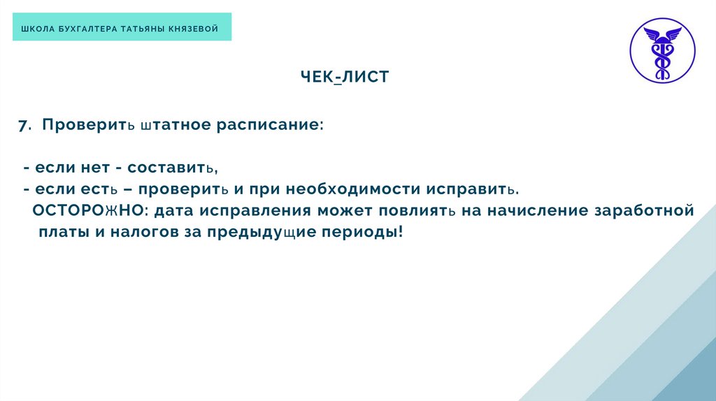 7. Проверить штатное расписание: