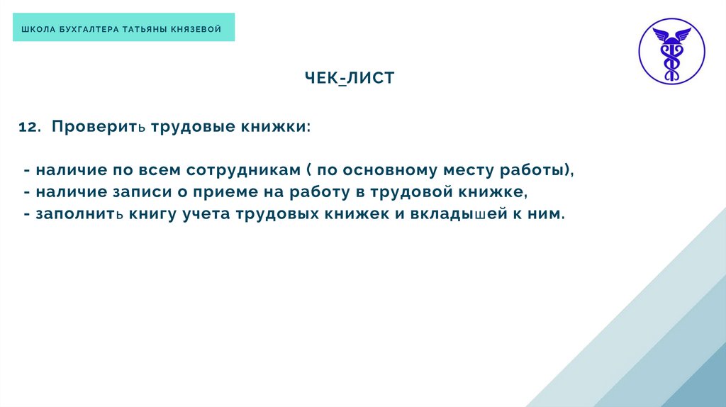 12. Проверить трудовые книжки:
