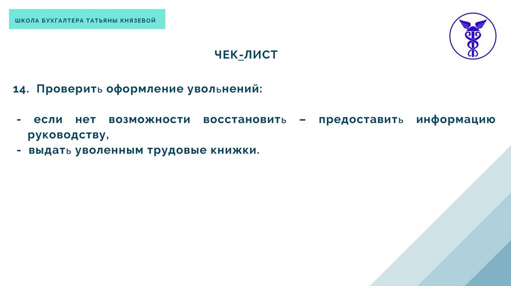 14. Проверить оформление увольнений: