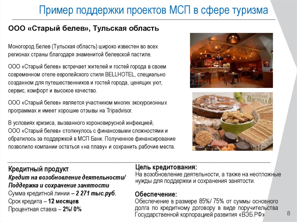 Пример поддержки проектов МСП в сфере туризмаООО «Старый белев», Тульская область