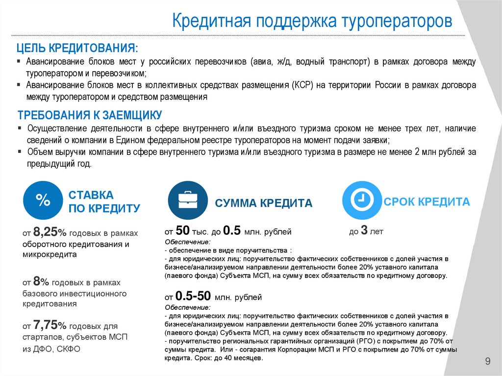 Кредитная поддержка туроператоровЦЕЛЬ КРЕДИТОВАНИЯ: