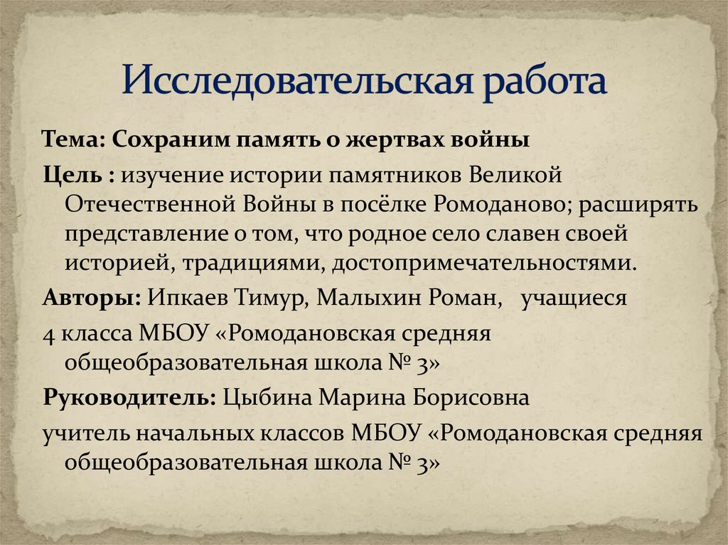 Авторы: Ипкаев Тимур, Малыхин Роман, учащиеся