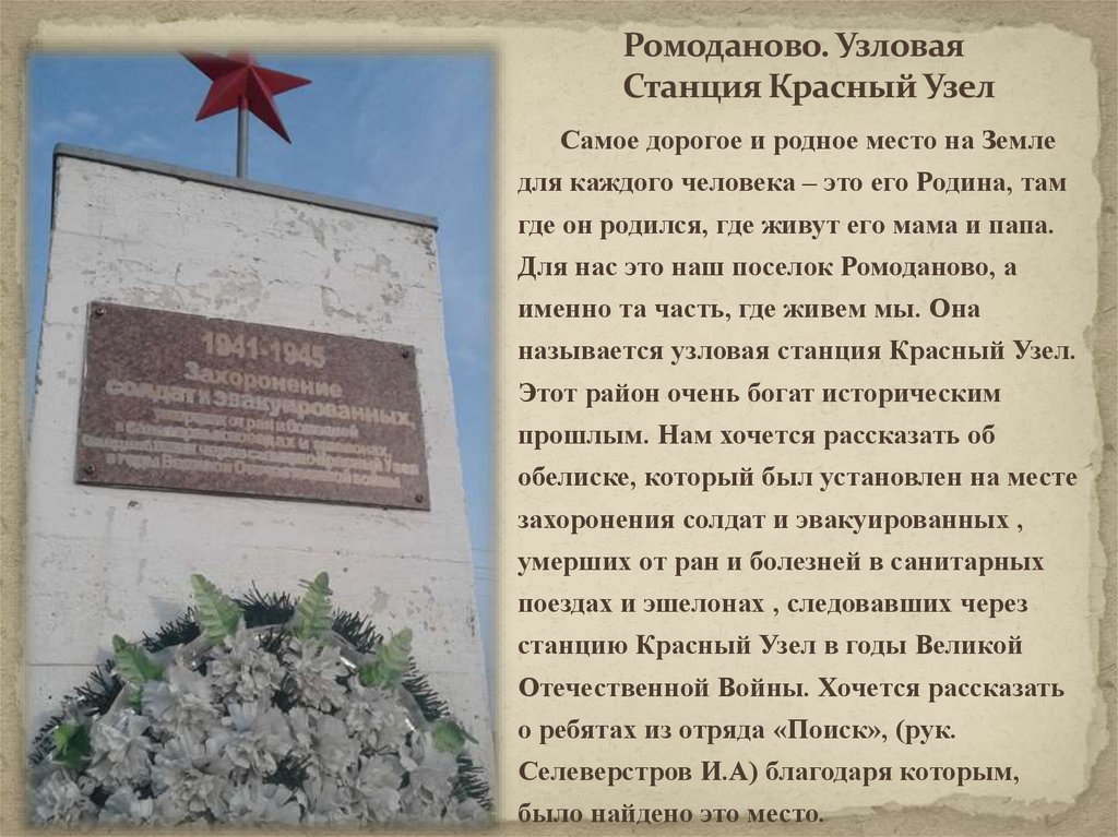 Отечественной Войны в посёлке Ромоданово; расширять