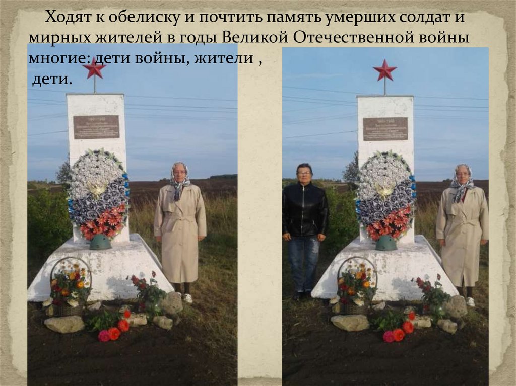 Ходят к обелиску и почтить память умерших солдат имирных жителей в годы Великой Отечественной войны