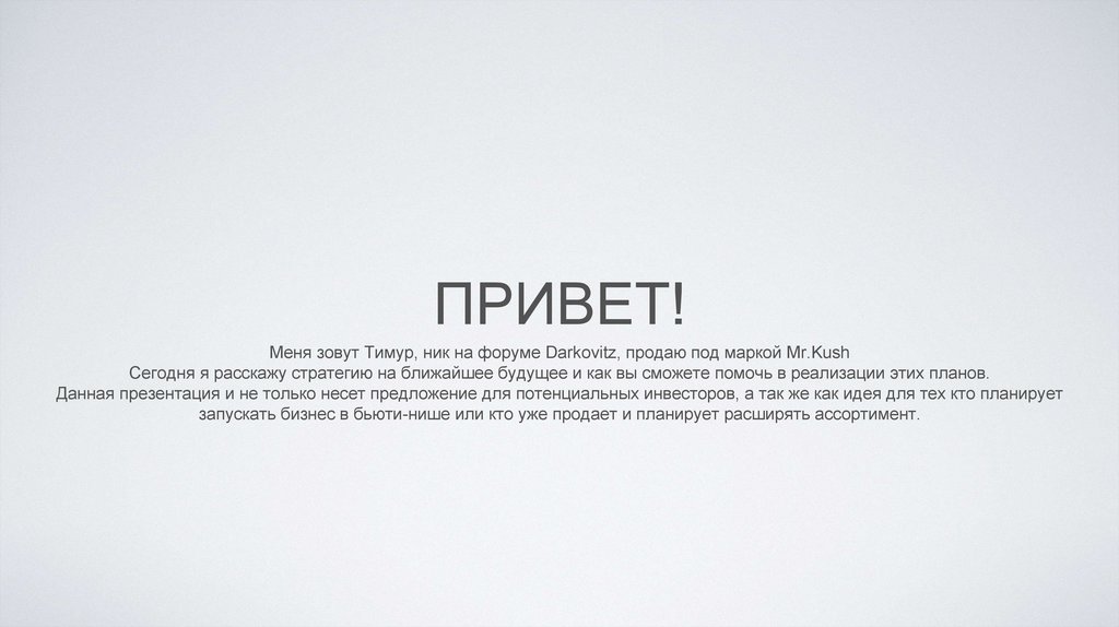 ПРИВЕТ!Меня зовут Тимур, ник на форуме Darkovitz, продаю под маркой Mr.Kush