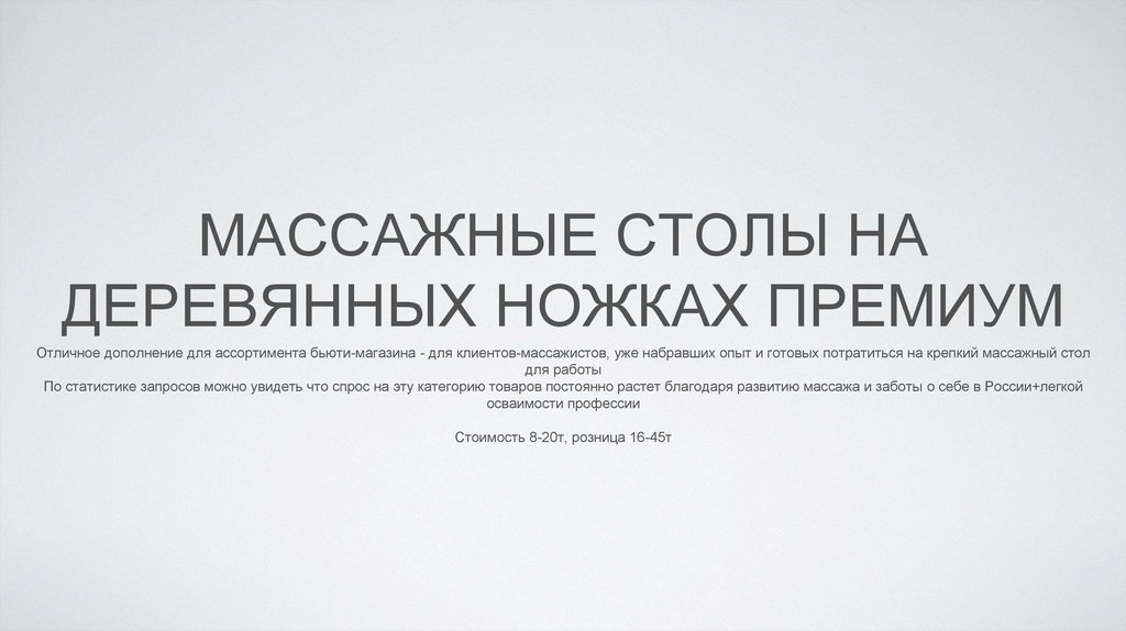 Отличное дополнение для ассортимента бьюти-магазина - для клиентов-массажистов, уже набравших опыт и готовых потратиться на крепкий массажный стол