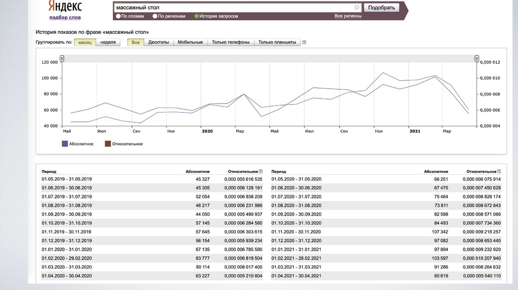 По статистике запросов можно увидеть что спрос на эту категорию товаров постоянно растет благодаря развитию массажа и заботы о себе в России+легкой