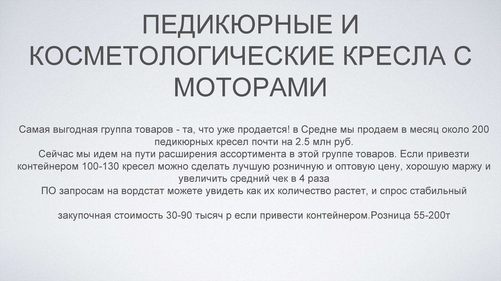 контейнером 100-130 кресел можно сделать лучшую розничную и оптовую цену, хорошую маржу и