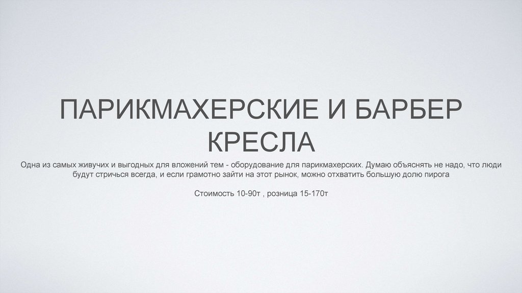 Одна из самых живучих и выгодных для вложений тем - оборудование для парикмахерских. Думаю объяснять не надо, что люди