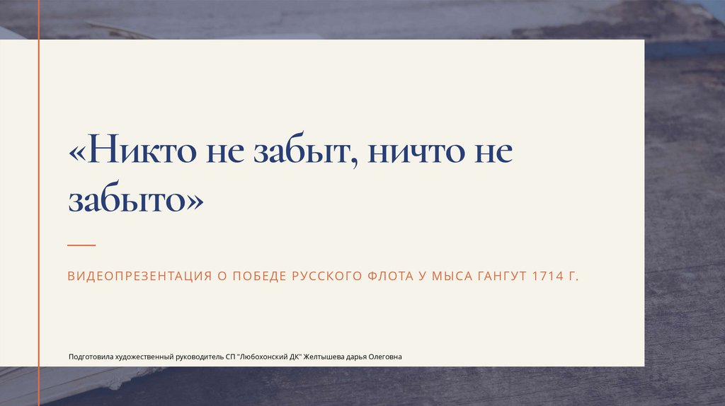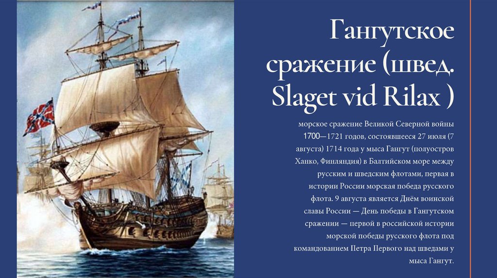 В ИД ЕО П РЕЗЕН ТА ЦИЯ О ПОБ ЕД Е РУССКОГО ФЛОТА У М Ы СА ГА Н ГУТ 1714 Г.