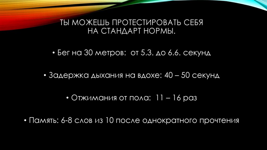 ТЫ МОЖЕШЬ ПРОТЕСТИРОВАТЬ СЕБЯНА СТАНДАРТ НОРМЫ.