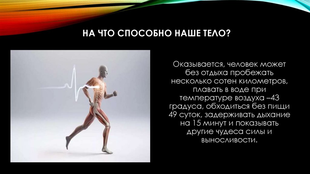 НА ЧТО СПОСОБНО НАШЕ ТЕЛО?Оказывается, человек может