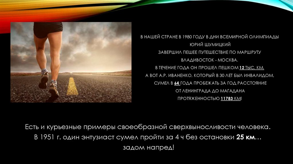В 1951 г. один энтузиаст сумел пройти за 4 ч без остановки 25 км…