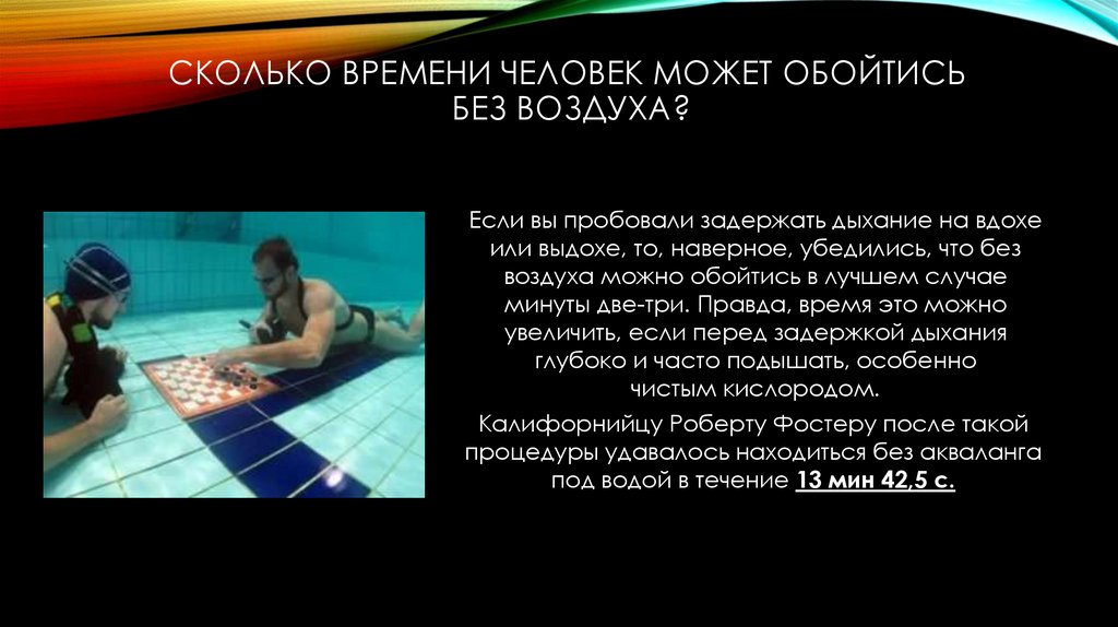 СКОЛЬКО ВРЕМЕНИ ЧЕЛОВЕК МОЖЕТ ОБОЙТИСЬБЕЗ ВОЗДУХА?