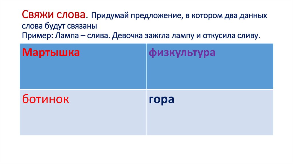 Свяжи слова. Придумай предложение, в котором два данныхслова будут связаны