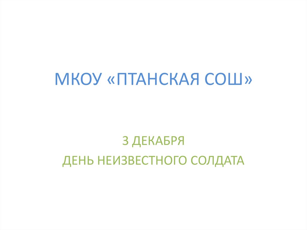 ДЕНЬ НЕИЗВЕСТНОГО СОЛДАТА