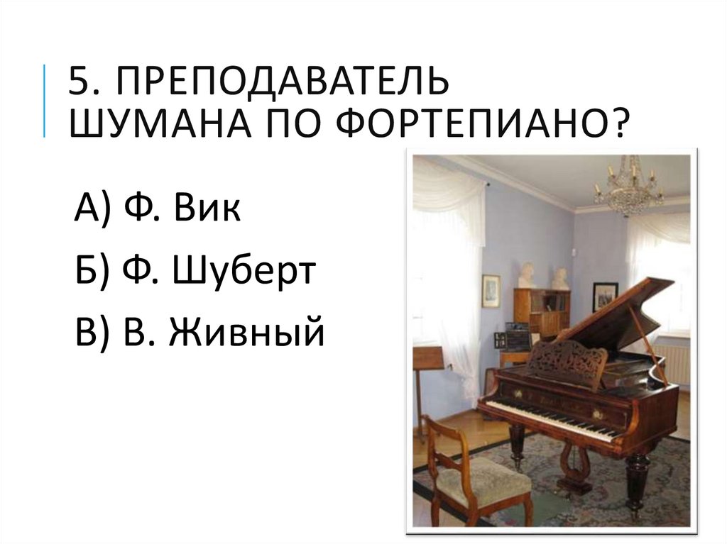5. ПРЕПОДАВАТЕЛЬШУМАНА ПО ФОРТЕПИАНО?