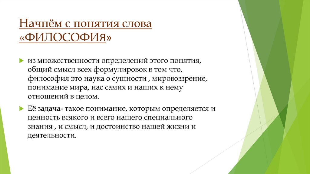 Начнём с понятия слова«ФИЛОСОФИЯ»